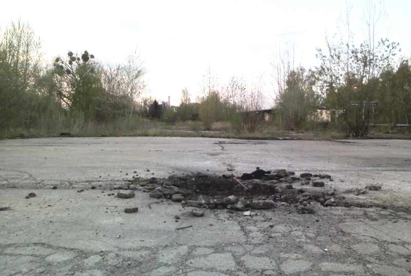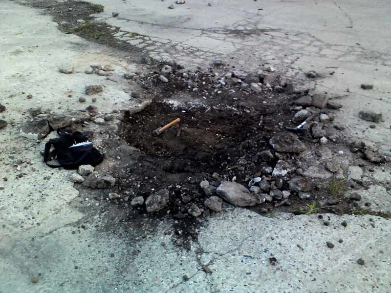 die Betonversiegelung daneben bis in 7cm Tiefe mit Hammer und Meisel