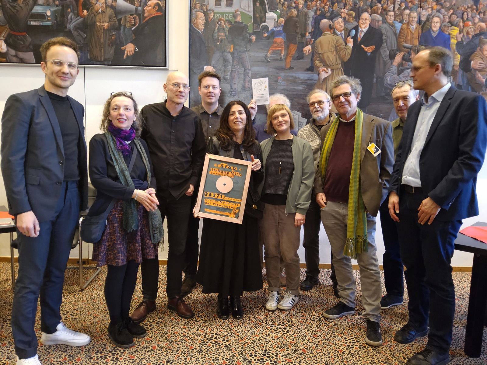 Am selben Tag haben wir die 36.371 Unterschriften unserer Petition an Abgeordnete aus dem Stadtentwicklungsausschuss überreicht. Mit der Petition fordern wir seit Jahren einen echten Neustart für die „Urbane Mitte“, der gemeinwohlorientierte Nutzungen vorsieht und der die ökologischen Belange und die denkmalgeschützten Anlagen des Gleisdreiecks respektiert.