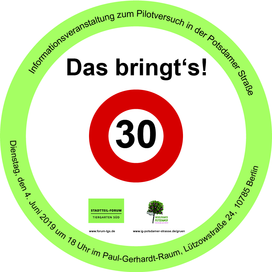 Seit Juni 2018 gilt auf der Potsdamer Straße Tempo 30. Innerhalb eines Pilotversuches der Senatsverwaltung für Umwelt, Verkehr und Klimaschutz soll getestet werden, ob eine Verstetigung des Verkehrs die Luft verbessert. Die Auswertung erfolgt im Herbst 2019.